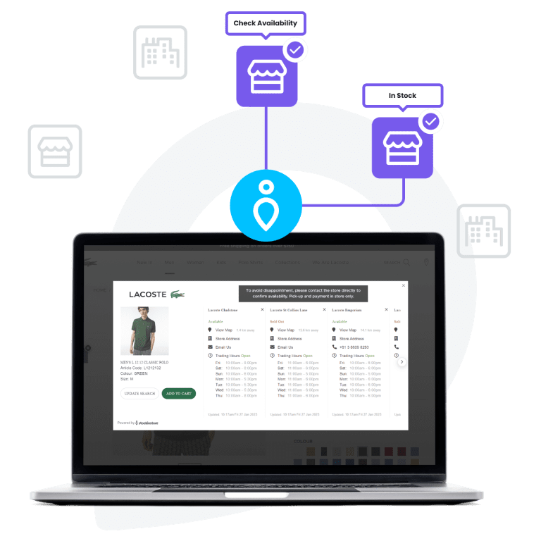 Show real-time product availability with stockinstore’s Find in Store solution and bring ready-to-buy customers into store. This is a must-have for retailers and franchises of any size and complexity.